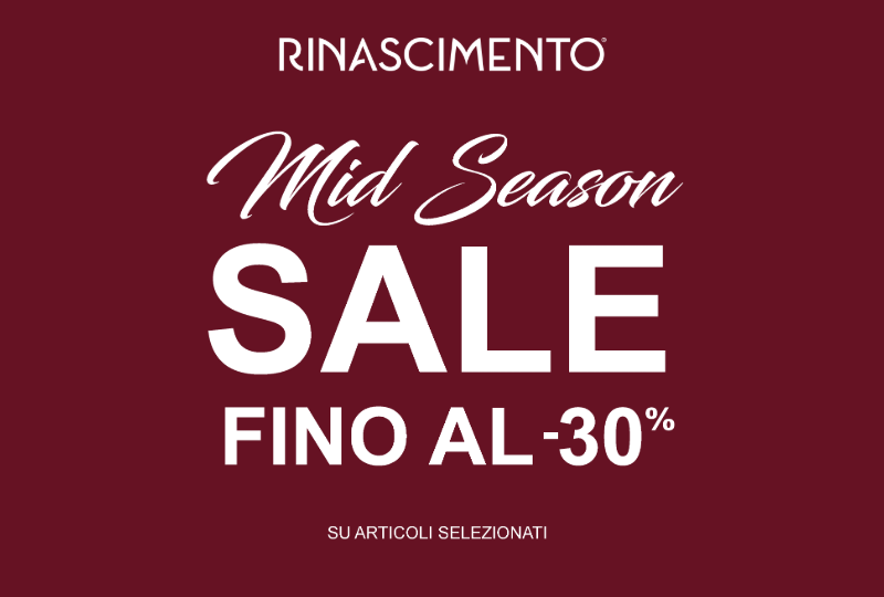 Il momento perfetto per il tuo shopping è adesso. Con la Mid Season Sale hai il 30% di sconto su una selezione esclusiva di capi Rinascimento.