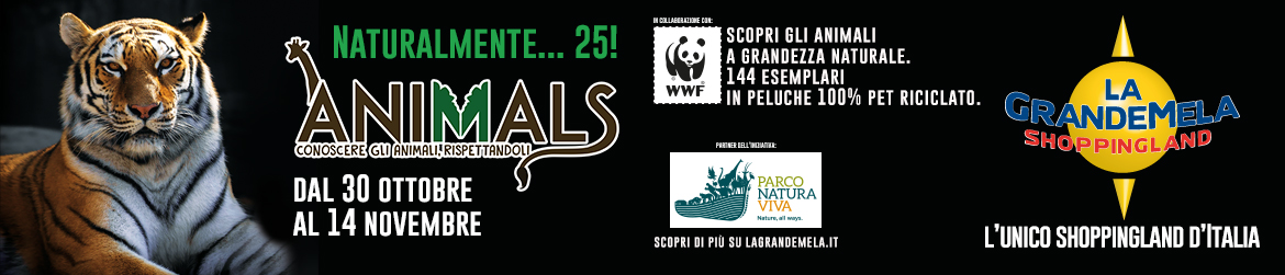Da sabato 30 Ottobre il Centro ospiterà Animals, un parco tematico dedicato agli animali di tutto il mondo con il patrocinio del WWF e la collaborazione di Parco Natura Viva.