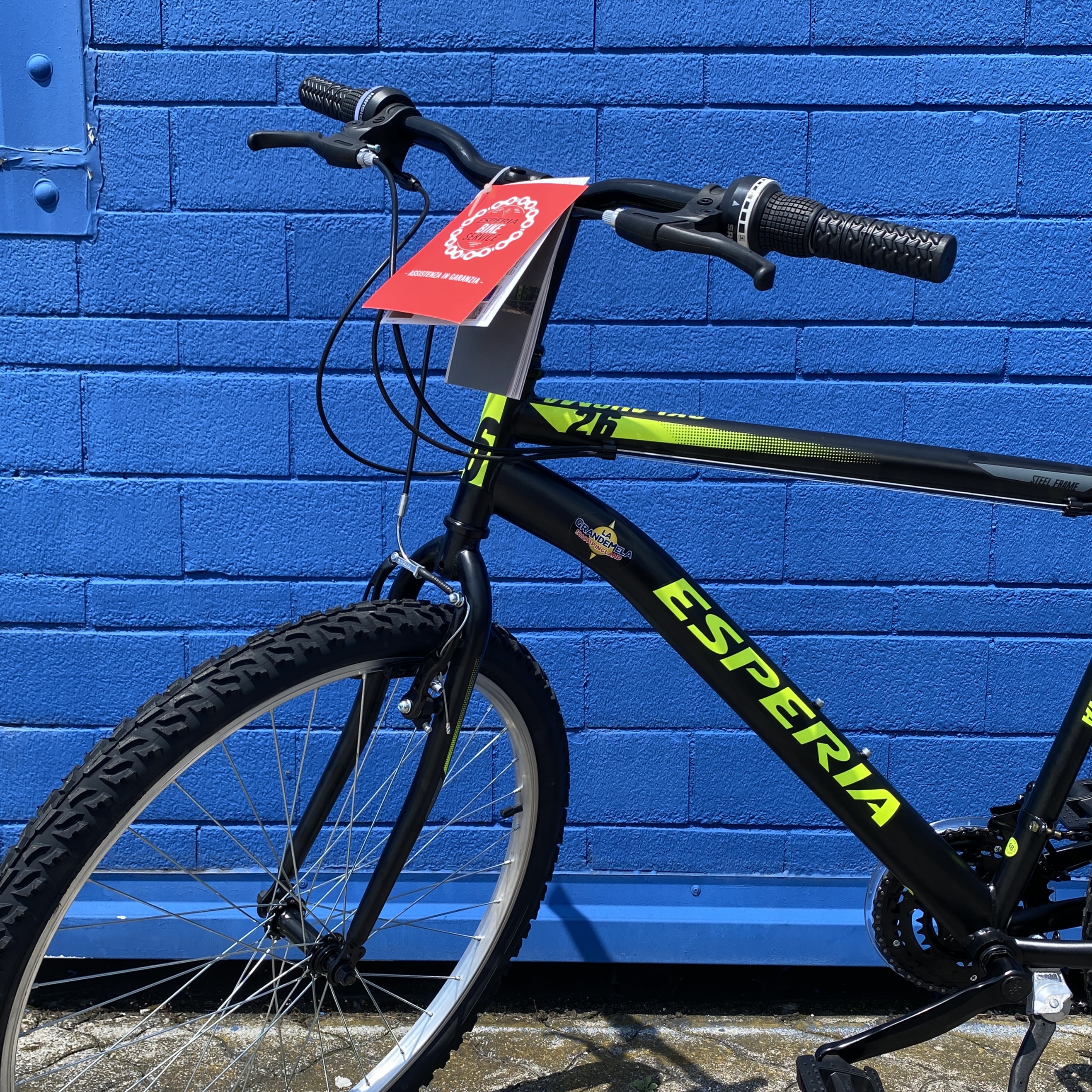 Pronto a portare le tue avventure all'aria aperta al livello successivo? Stacca la spina e immergerti nella bellezza della natura con una mountain bike Esperia! Progettata per la velocità e l'agilità, questa mountain bike è perfetta per tutte le tue esplorazioni in sella. Affronta qualsiasi terreno con sicurezza e velocità: che sia l'adrenalina di un sentiero di montagna o la quotidianità di un tracciato urbano, questa mountain bike sarà la tua compagna perfetta per la tua prossima avventura!