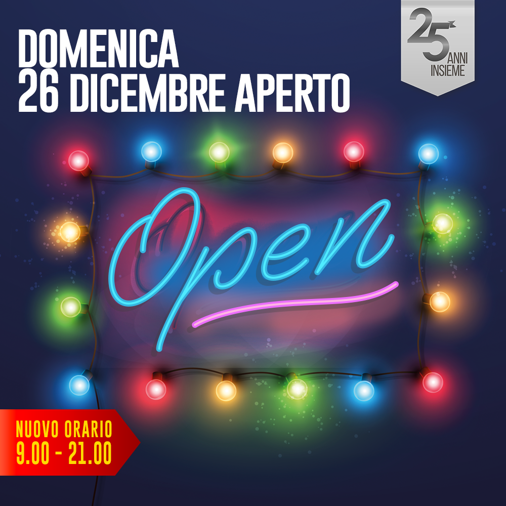 - 26 dicembre: aperto dalle 9.00 alle 21.00