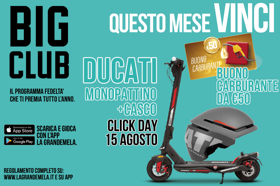 E il 15 agosto partecipa al Click Day per vincere 1 monopattino Ducati + casco!